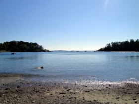 As part of our goal to explore Marblehead, this morning Steph, Lachie, Selby, Griff and I went for a short hike in town. We ventured into the Steer Swamp hiking trail, which is a nice walking path in the woods off of Whittier Rd/West Shore Dr. It was a short 20 minute hike that brought us out to Grace Oliver Beach. Here is a pic of Selby in the water at the beach...