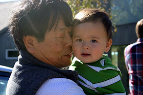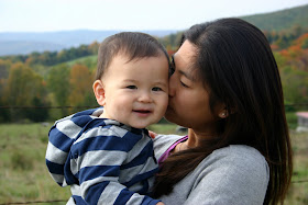 It's official: Griffin is a star (in my eyes at least), and he was one of the breadwinners of the family today as he had his very first baby model job! He auditioned last week and landed the part of the "Asian Baby". So we went on an adventure this morning to Quixote Studios in Boston, where Griff was photographed for a national print ad for Oreck Vacuums. The part of Griff's Fake Asian Mom was played by the lovely Michelle, who ironically looked more like his Mom than me. Tara, the wardrobe lady dressed Griff in a striped blue long sleeve shirt and some blue PJ bottoms with stars. Griff was shot (eek, that sounds so violent.. restart: Griff was 'photographed'...) being held by his Fake Mom who was told to smile and act like she "loves her baby and her vacuum". Poor Michelle- I could only imagine the pain she must have felt in her arm, as she had to hold our 25 lb(?) sack of potatoes on her right side for about 10 minutes straight while they shot some pics (a vacuum would be pictured in her left hand). Once Griff started melting down, we took a break while Michaela, the backup Asian baby did shots as well. We played and did our thing until we were up again. It was then time to shoot some video, which by the way I was only told we were doing still photos, so this came as a surprise. Funny story.. P.S. Did I mention that Griffin is terrified of vacuums (when they're on)? So, the intended video was to consist of the Fake Asian Mom putting Griff into a high chair, where he'd get excited as he had 2 big bowls of Cheerios to play with/eat and spill everywhere; then the Mom would let him continue to snack while she happily vacuumed the floor. Remember I said Griff was scared of vacuums? Well, here's the video they actually got...