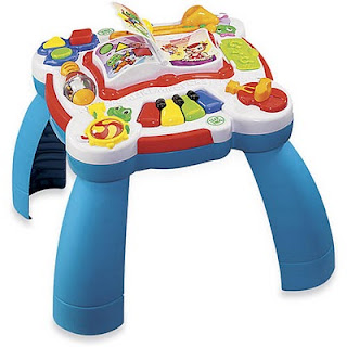 This activity table was Griffin's motivation to learn how to pull himself up to a standing position. Yesterday on 11/9/10 (age 9.9 months), over at the Rosenbaum's, I turned and saw Griffin standing. He sat back down, we all cheered & clapped (including Griff) and then a few moments later, I witnessed him pull himself back up to his feet. It was the first official time I saw him do it. Whoohoo!