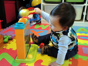 The two things that surprised me/made me laugh the most were the accuracy and the insane brute baby strength he used to hammer each ball in. Perhaps our baby was a carpenter in a previous life, or he is genetically destined to be mechanically inclined and share a love for home improvement projects like his good ol' Dad.