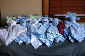 - Loves his Lovies- particularly the lightblue dog head blankets- thank goodness I bought 2 of them.