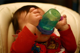 It is amazing to me that 10.5 month old Griffin can demonstrate that he comprehends certain phrases that I say to him. For instance, during meal times Griffin has been a big fan of using his sippy cup. It's a non-fancy plastic Take and Toss brand cup with Griff-sized little handles. When he drinks water from it, I say to him, "hold it up", and he will tilt his head back and enthusiastically hold up his cup as high as he possibly can.