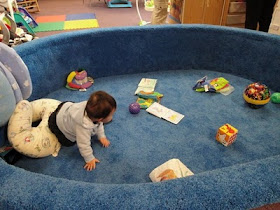 This activity table was Griffin's motivation to learn how to pull himself up to a standing position. Yesterday on 11/9/10 (age 9.9 months), over at the Rosenbaum's, I turned and saw Griffin standing. He sat back down, we all cheered & clapped (including Griff) and then a few moments later, I witnessed him pull himself back up to his feet. It was the first official time I saw him do it. Whoohoo!