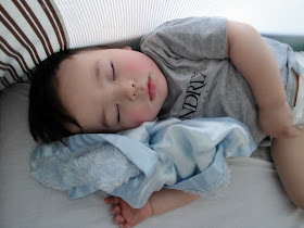 Well it's official. Griffin has transitioned into taking just one nap a day. It's 2:19pm and he's been passed out in his crib since just before noon. In spite of my efforts to cling to our 2 nap routine (in my head 2 naps = 2 opportunities a day to have some quiet time to myself...), Griff has natually shifted himself to a new found schedule: 6:30am awake, whining for his morning bottle, 8am breakfast, 10am milk/small snack, 11:30am lunch, 12pm nap, 3pm snack, milk, 5:30pm dinner, 7pm bedtime (hopefully an earlier bedtime!?) This is yet another reminder that my baby is turning into a big boy... oh crap, I see him waking up...