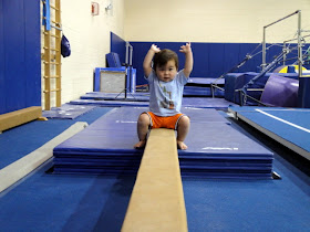 On the balance beam... Griff is just starting to understand how to walk across it with my help.