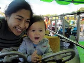 After our family breakfast at Starbucks (there's nothing better than enjoying a venti vanilla soy no foam latte and toasted butter croissant with the two people who made it possible for me to even celebrate Mother's Day- Tom & Griff), things got a little inconvenient, dramatic, and stressful: I got my period (I know, TMI, sorry, at least I'm not knocked up!), which was accompanied by a pile of crazy lady hormones that took their toll on me big time throughout the latter part of the day. Griff was a little out of sorts, red cheeked with slight temp (99.2) which is common for him when teething. After his blink of a morning nap, the two of us got out of the house for a change of scenery and to use up some leftover carnival tickets at Devereux Beach. We had a spin on the merry-go-round, and got dizzy on the big golden bus ride. We stopped at Baby Gap to buy some not so practical, but unbelievably cute sun dresses for Bump Vytopil (the cute baby girl clothes increased my "I want to have another baby" scale from a 3 to a 3.8 on a scale of 1-10..), and exchanged Red Box DVDs (returned Love and Other Drugs, rented The Switch). By 2pm, I got my exhausted little guy back for what I thought was going to be a nice solid nap, but 40 minutes later, poor Griffin was an awake/clingy/whiny/ sack of hot potatoes. His "teething" symptoms had turned into a full blown 102.2 fever. Bummer! I was so convinced the rest of my day was ruined, that I promptly burst into ridiculous hormonal I'm-alone-on-Mother's-Day-tears when I stepped out of my car in Pat's driveway with cupcakes and hot dogs in hand. All of us abandoned Moms hung out for a playdate and dinner. In the 2 hours we were at Pat's, Tylenol and fresh air seemed to cure Griff, as he was back to himself and fully recovered by bath time. (BTW, what kind of lamo fever only lasts 2 hours!?) Anyway, once my sweet boy was in bed, I called Tom's Mom and chatted a while, then housed a few more chocolate cupcakes and spent the rest of my evening hanging out with Jennifer Anniston and Jason Bateman.