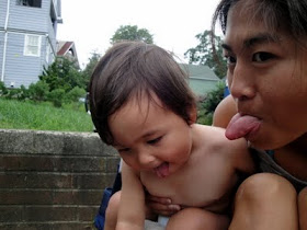 Griff has started saying the funniest expressions, and most of the time he uses them in the appropriate context.. "Oh man" (when he drops something), "whoa" (when he trips up or down the stairs), "Oh yeah" (when I give him a delicious snack)...
