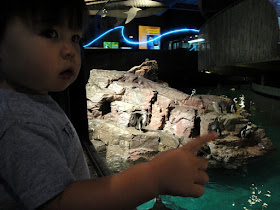 Up until the meltdown, we had a great time. We saw sea lions, stingrays (i touched a stingray!), sharks, penguins, a goosefish, jelly fish, anemones, a huge lobster, starfish, and lots of fish. Adventures to places like the aquarium are becoming extremely fun, as Griff gets excited to walk around and explore, and he can talk about the animals he sees (he talked about the penguins and sharks all the way home). That said, it's also becoming difficult to take him places, as Griffin wants so badly to be independent. He refuses to hold my hand when we walk; he physically protests by becoming totally limp and sitting down wherever we are to avoid holding my hand... it's quite clever, actually.