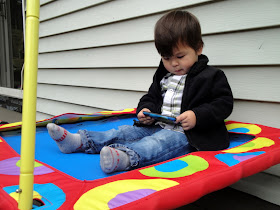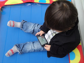 We purchased an iPod Touch back in February to keep Griffin entertained on long flights and car rides.. His current favorite apps are the Caillou books, Zoo Train, Peekaboo Barn, flashcards, and Memory. He can swipe through pictures, and is starting to know how to find/open some of his apps. He's just figured out that if he presses the big button, the app closes (Prior to making this connection, Griff's love for random button pressing proved to be extremely annoying when using the iPod). Also, this makes me sound like an old lady, but it really is amazing how fast kids learn, and how technologically savvy Griffin already is at the age of almost-2.