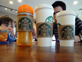As of this week, Griffin can officially say "Starbucks". It makes sense that it's made it into his limited vocabulary considering we've been there 1-2 times a week basically since he was born... He requested yesterday that we go to Starbucks, and he yells with excitement, "yaaaaay!" whenever I say we are going there. Now if I can just train him to say my order, "venti vanilla soy no foam latte", that would literally be amazing...