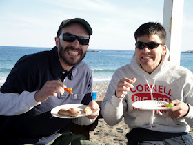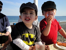 I had one of those "I can't believe we get to live here" moments this weekend.  We joined some of our neighbors and friends for a casual pizza dinner at Devereux Beach.  We scarfed down Romanos Pizza, fruit salad, and dessert from Shubies.  Our kids ate together and then played in the sand and on the swings while we hung out chatting under the pavilion overlooking the ocean.  The weather and company was perfect.  I heart Marblehead.