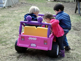 By the final yard, Griffin was more interested in the swing set and riding the pink Barbie Jeep with Charlie.