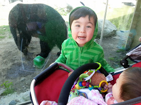 I survived my first real adventure taking the kids somewhere farther than a local playground or library. Last Friday, after getting ready and packing literally all morning as if we were leaving for a week, we drove out of "the bubble" to meet Sandy, Connor, and Ryan down at the Stone Zoo. Highlights were seeing the monkeys, fox, and brown bears as well as watching Griffin and Connor hysterically laugh at each other after our lovely picnic lunch. Sadly, the sloth exhibit had been moved to make way for Koalas, so I didn't get to see my beloved 3 toed friend.. . Griff had a minor meltdown when we reached the coin operated rides and I told him that I didn't have any quarters. The four hour round-trip adventure was awesome but totally exhausting, and I found myself detouring on the drive home in a desperate search for a drive thru Dunkin Donuts so that I could suck down some caffeine to make it through the afternoon....