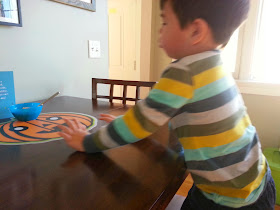 It's 5pm. At 3pm Griffin ate 2 big cups of cantelope and at 4:40 was begging for food. He just ate about 10 baby carrots with hummus (which he would never normally do), half a large avocado, and 8 dino nuggets (he usually eats 3-4). Crazzzy.